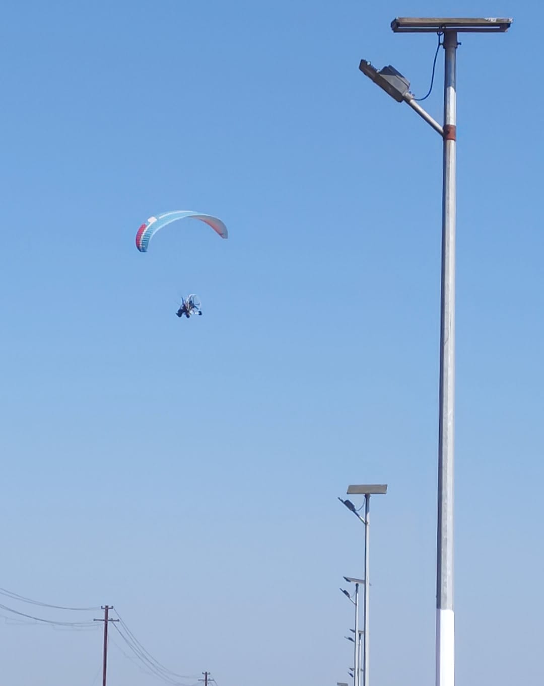 Paramotoring (also called Powered Paragliding) is an air sport where a pilot flies using a paraglider wing combined with a motorized propeller strapped to their back or attached to a lightweight trike.